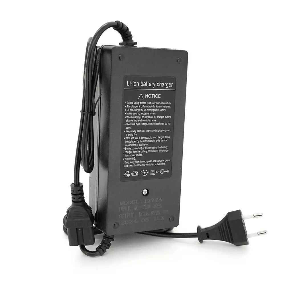 Зарядний пристрій призначений для заряджання літій-іонних акумуляторів напругою 16,8 В та ємністю 4S зі струмом 2 А. Пристрій має штекер 5,5 х 2,5 мм для підключення до акумулятора.