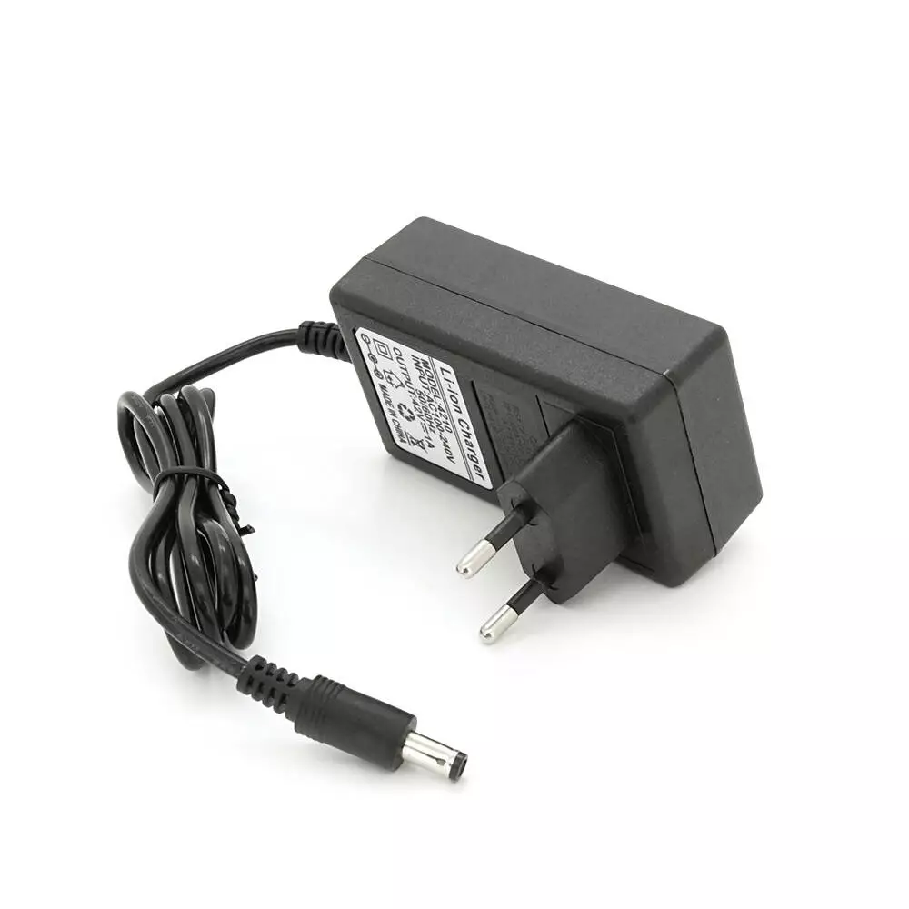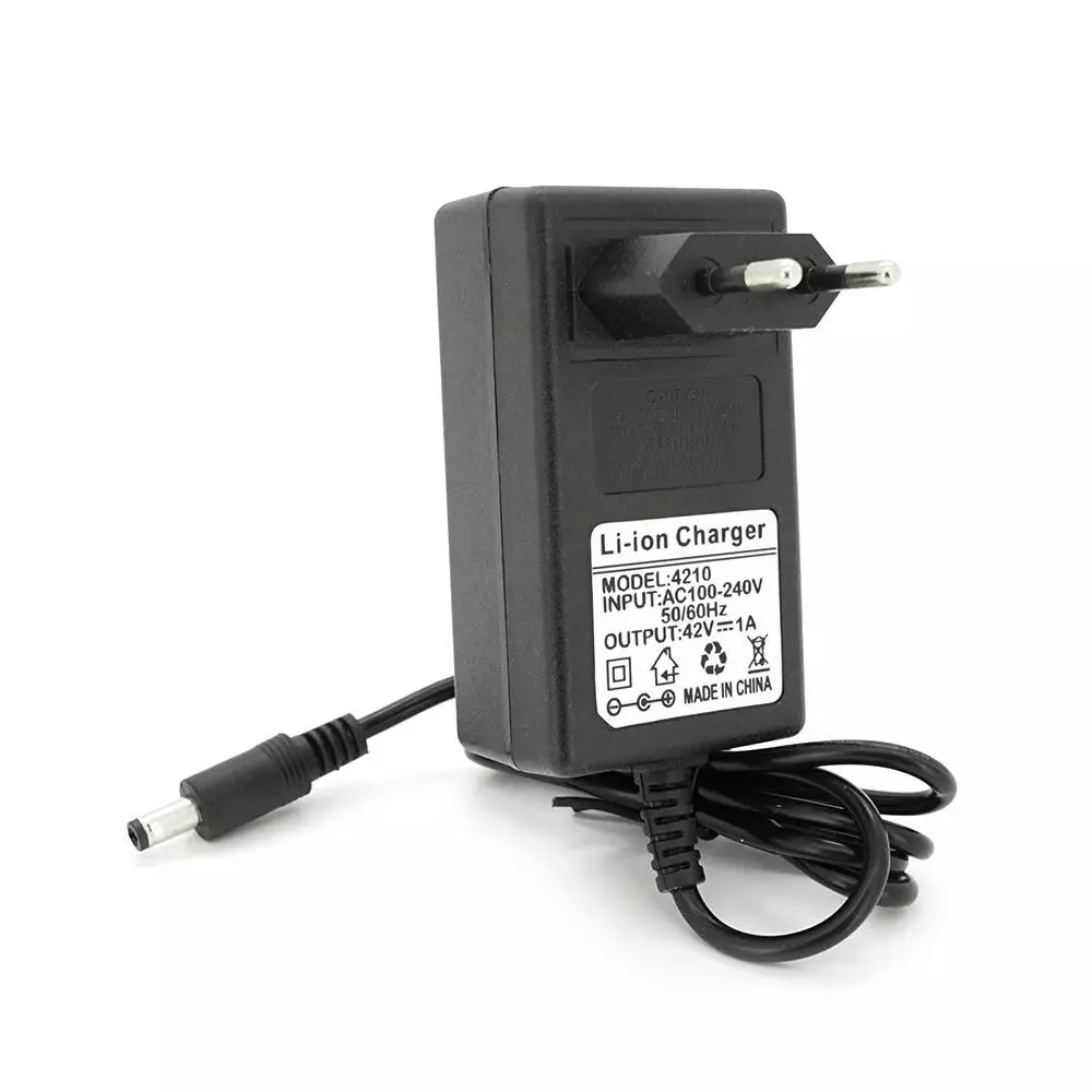 Це професійний зарядний пристрій, призначений для заряджання літій-іонних акумуляторів напругою 42 В з силою струму 1 А. Він оснащений штекером 5,5-2,5 мм та має індикатор, який інформує про стан зарядки. Зарядний пристрій забезпечує швидку та ефективну зарядку, захищаючи акумулятор від перезаряду та перегріву.