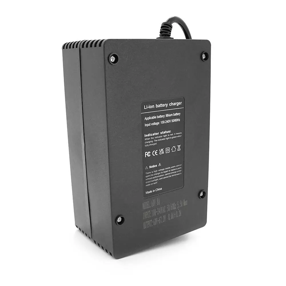 Зарядний пристрій для акумуляторів Li-ion 67,2V,16S,8A,600W, штекер Triangle plug (T-tipe/IEC/C13 N+L-) індикація, 220х122х86mm, 1.5kg
