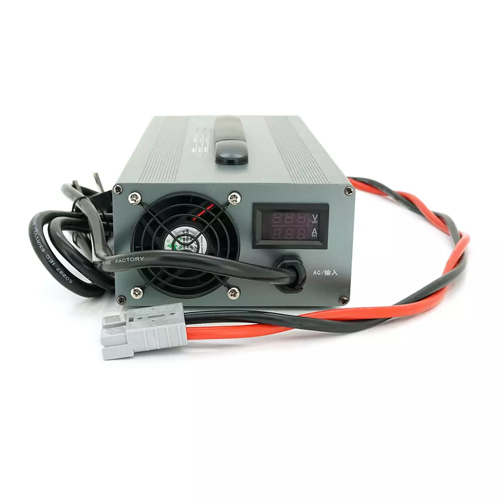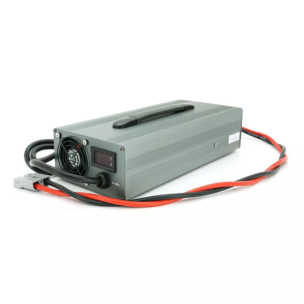 Зарядний пристрій призначений для заряджання літій-залізо-фосфатних (LiFePO4) акумуляторних батарей 12 В з напругою заряду 14,6 В. Він має струм заряду 50 А, що забезпечує швидку та ефективну зарядку акумуляторів. Пристрій оснащений роз'ємом Anderson для зручного та надійного підключення до акумуляторів.