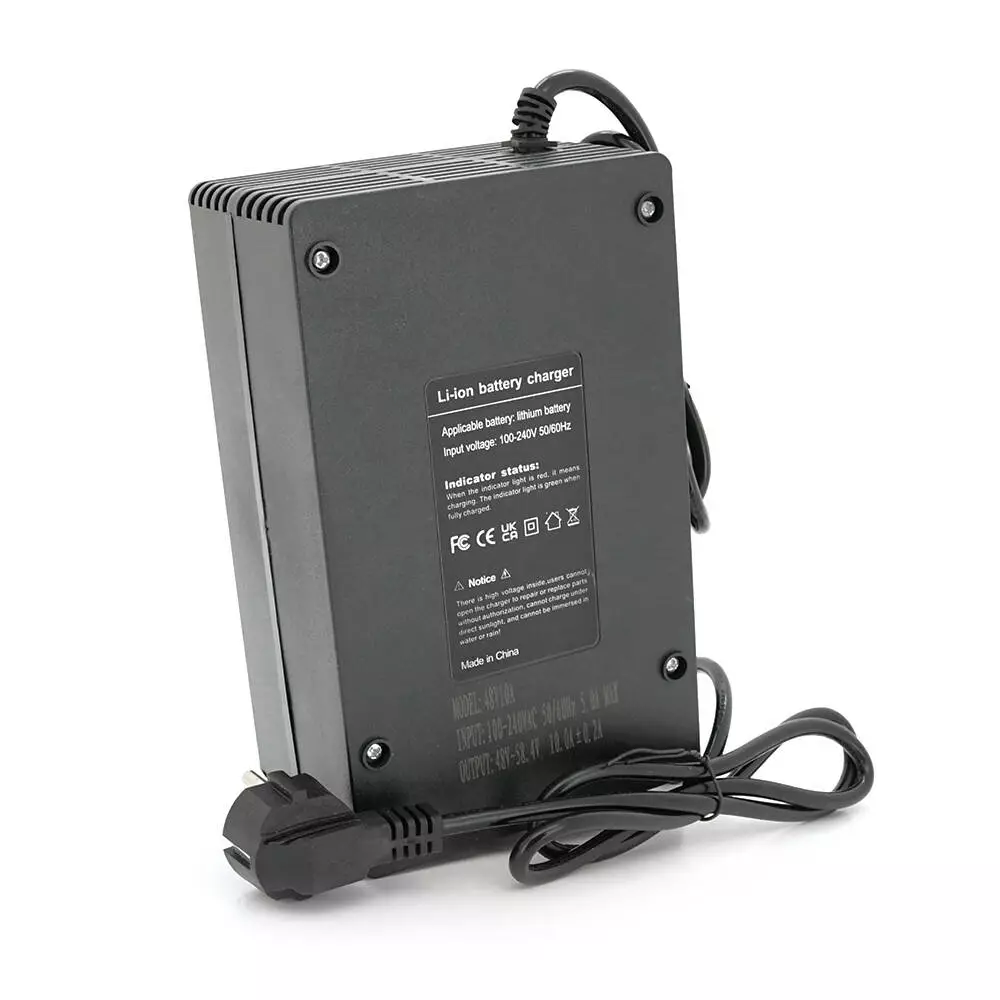 Зарядний пристрій призначений для заряджання акумуляторних батарей типу LiFePo4 напругою 48 В (58,4 В) та ємністю 16S. Пристрій ідеально підходить для використання в різних приладах, таких як електросамокати, електровелосипеди та інші пристрої з акумуляторами LiFePo4.