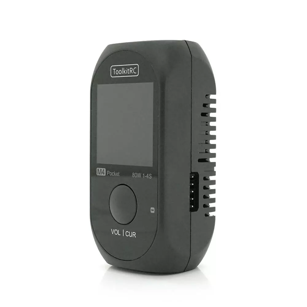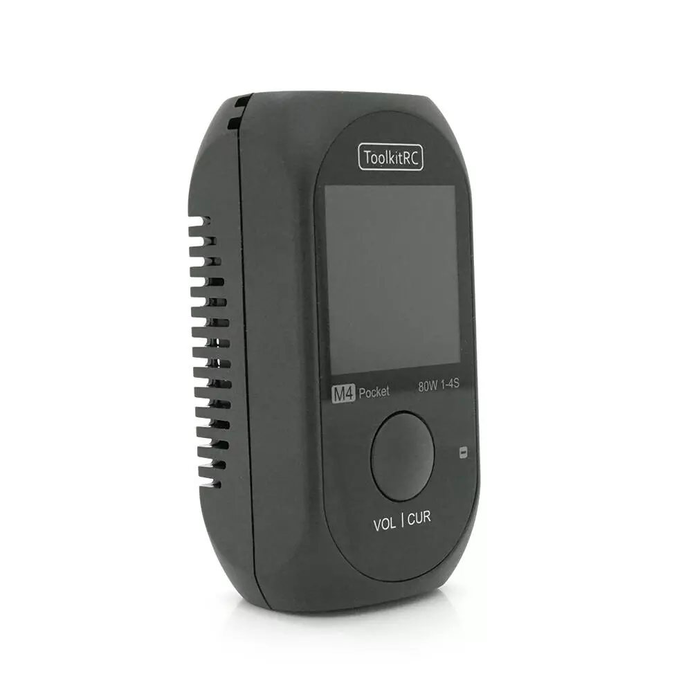 Зарядний пристрій ToolkitRC M4 Pocket 80Вт призначений для заряджання різних типів акумуляторів, включаючи LiPo, LiHv, LiFe, Lion, в діапазоні від 1 до 4S. Пристрій оснащений роз'ємом XT60 і має вхідну напругу від 7 до 25В. Також у пристрої передбачено роз'єм USB-C In/Out для підключення та заряджання інших пристроїв. Вага зарядного пристрою становить 75г, при цьому відсутній вбудований блок живлення.
