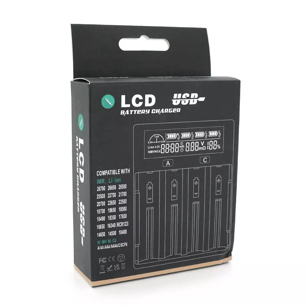 Зарядний пристрій універсальний, 4 канали, LCD дисплей, підтримує Li-ion, Ni-MH та Ni-Cd AA (R6), ААA (R03), AAAA, С (R14)