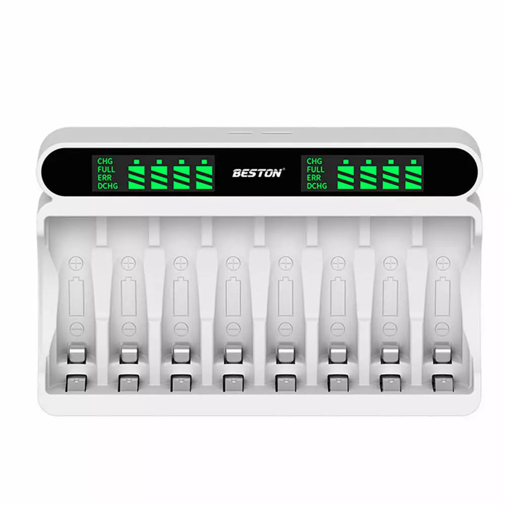 Зарядний пристрій універсальний BESTON, 8 каналів LED інд., підтримує Li-ion, Ni-MH та Ni-Cd AA (R6), ААA (R03)