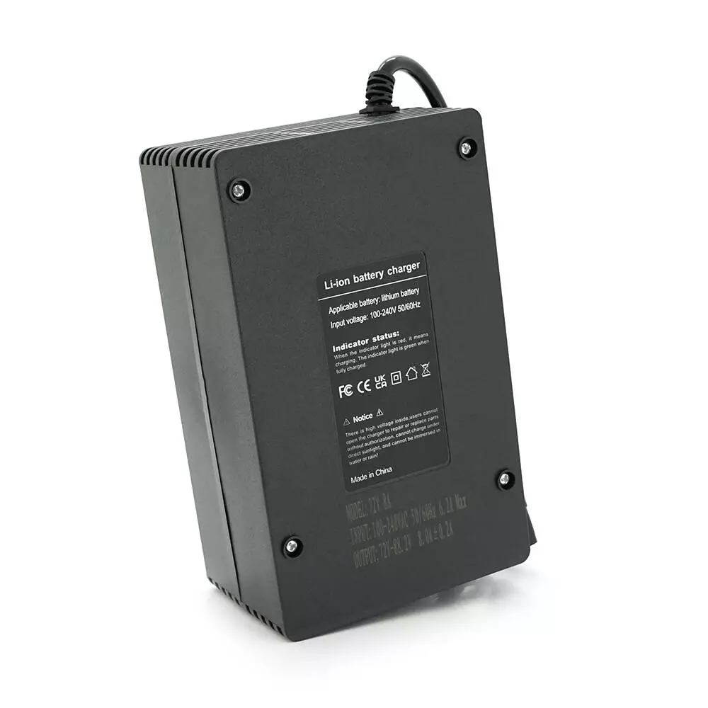 Зарядний пристрій призначений для заряджання літій-іонних акумуляторів ємністю 21S (72В, 88,2В) з номінальним струмом 8А та максимальною потужністю 750Вт. Зарядний пристрій оснащений системою індикації, яка інформує про стан заряду акумулятора.