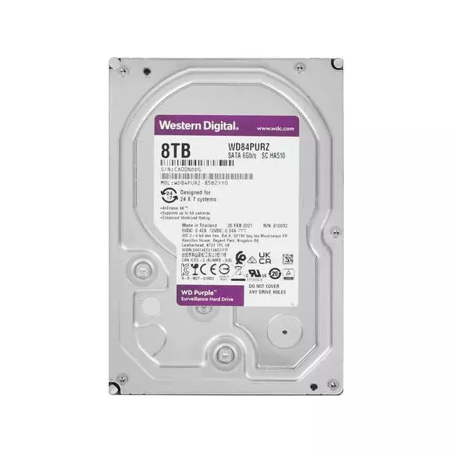 Жорсткий диск Western Digital Purple 8TB 5400rpm 256MB WD85PURZ 6Gb/s ідеально підходить для встановлення як у домашні відеоспостережні системи, так і в професійні системи відеоспостереження, де потрібне надійне зберігання і швидкий доступ до відеоматеріалів.