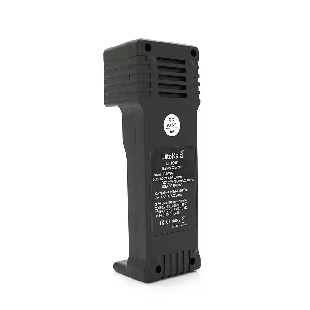 ЗУ універсальне Liitokala Lii-100C, 1 канал, LED дисплей, USB, підтримує 3.7V/3.8V Lion/3.2V Li-Fe/1.2V NIHM/21700/18650/16340/AAA/AA/SC/S