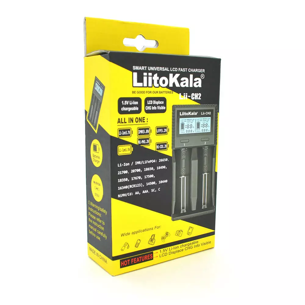 ЗУ універсальне Liitokala Lii-CH2, 2 канали, LCD дисплей, підтримує Li-ion, Ni-MH та Ni-Cd AA (R6), ААA (R03), AAAA, С (R14)
