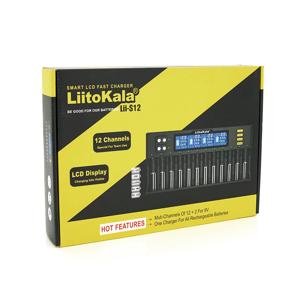 ЗУ універсальне Liitokala Lii-S12, 12+2 каналів, Ni-Mh/Li-ion/LiFePo4/крона, 220V/12V, LED+LCD, Box